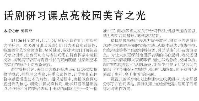 山西中医药大学:话剧研习课点亮校园美育之光