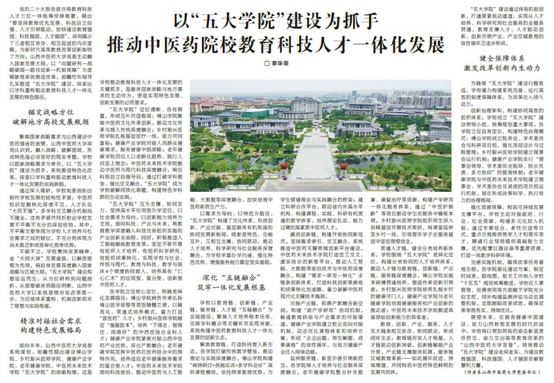 以“五大学院”建设为抓手推动中医药院校教育科技人才一体化发展