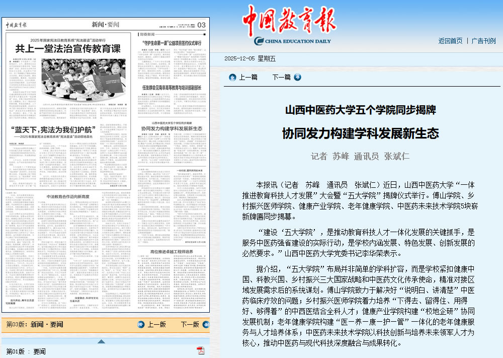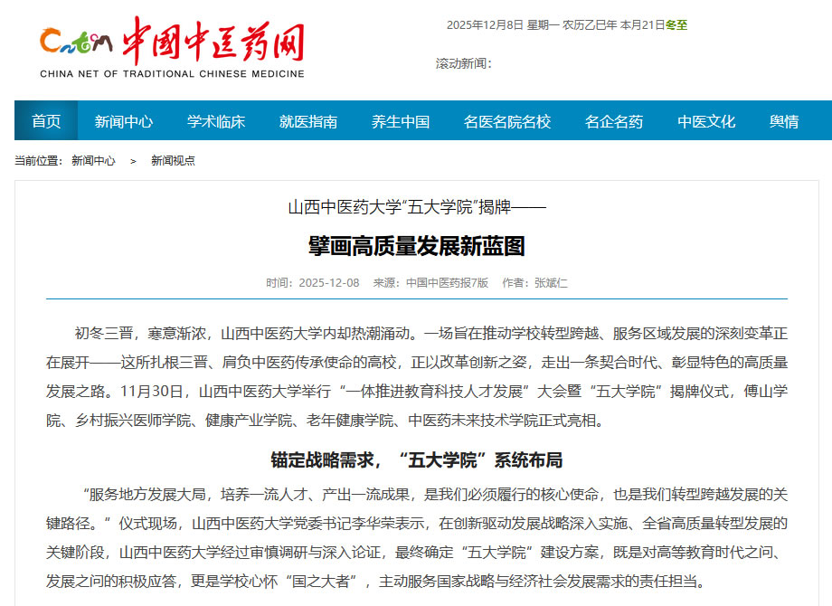 五大学院破局而立 山西中医药大学深入推进教育科技人才...